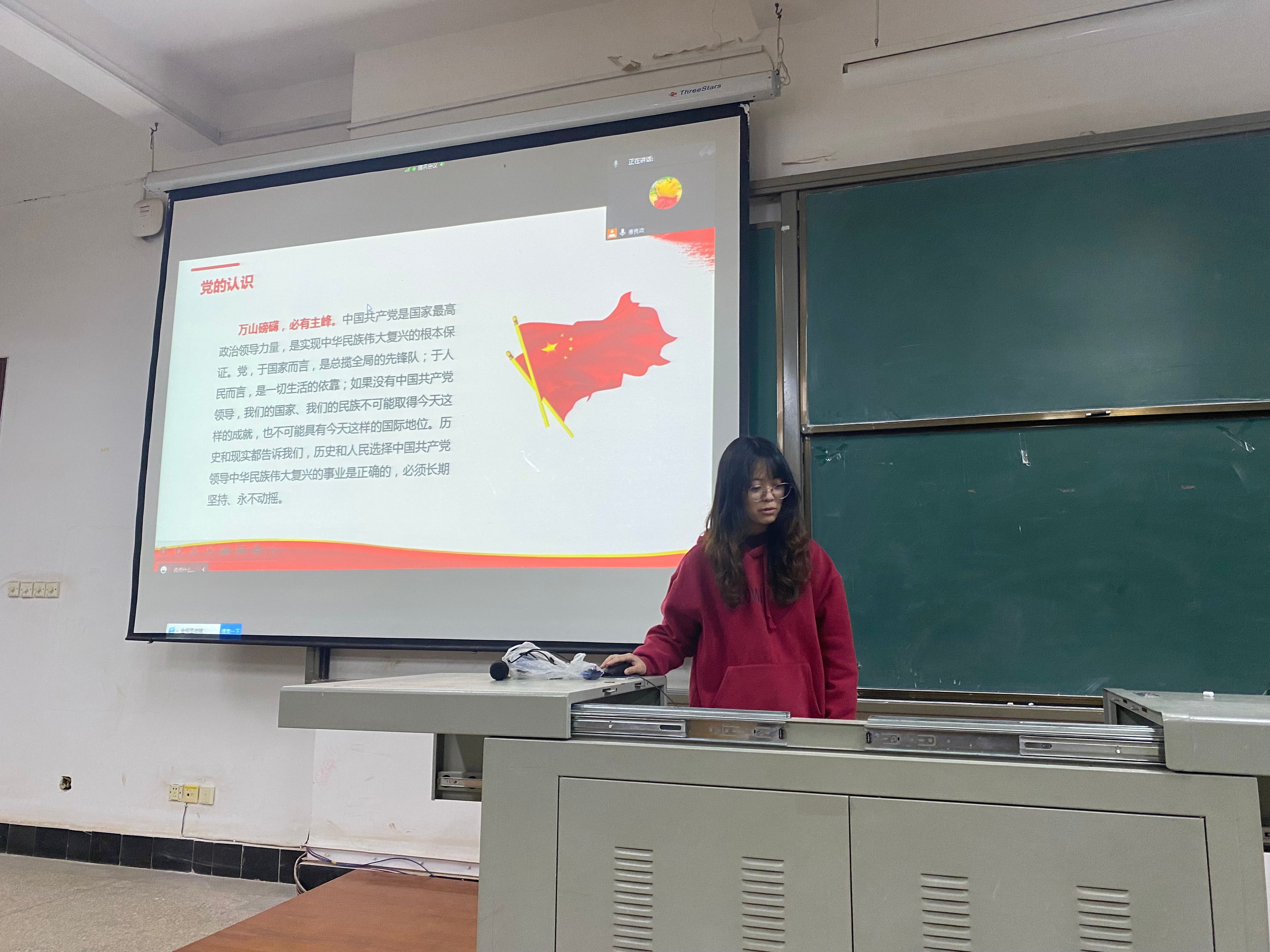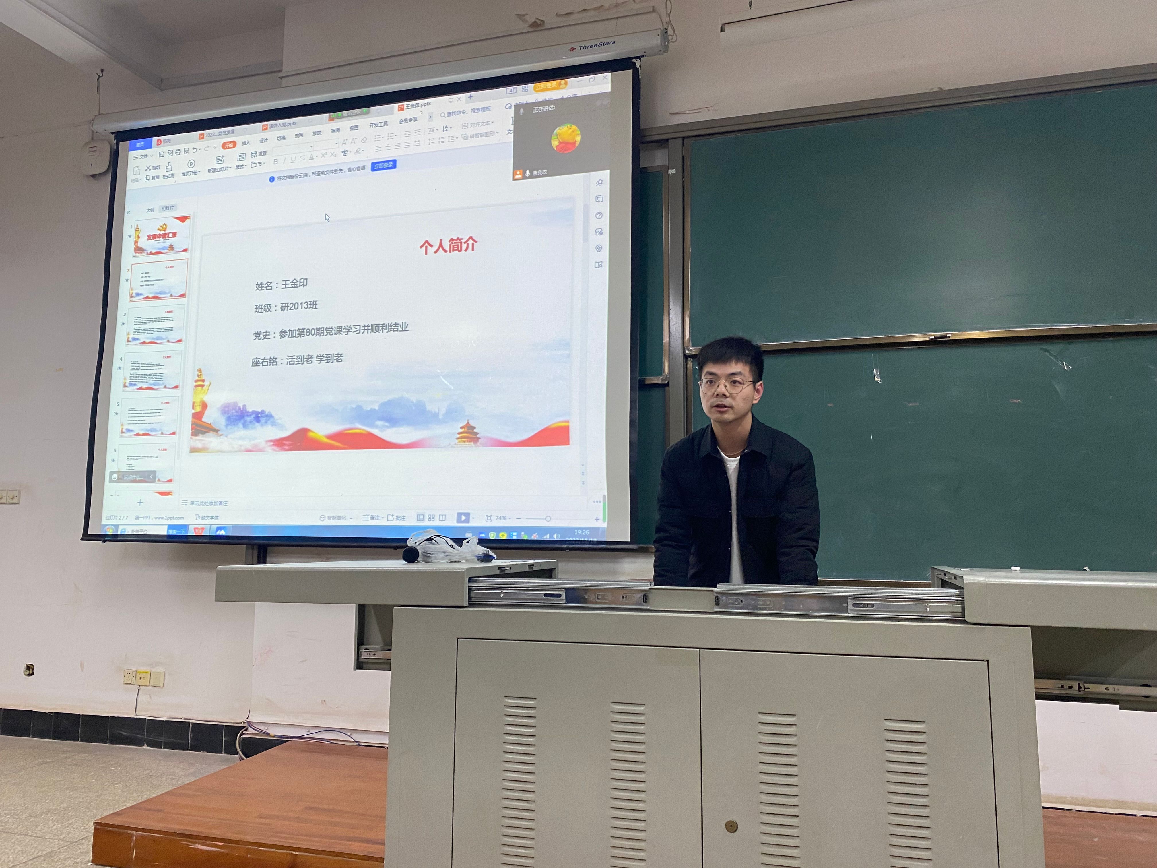 谢老师随后为大家讲解了党的二十大党课,从过去五年的工作和新时代十年的伟大变革、开辟马克思主义中国化时代化新境界、新时代新征程中国共产党的使命任务、加快构建新发展格局、实施科教兴国战略等五个方面为大家宣讲了党的二十大精神。
