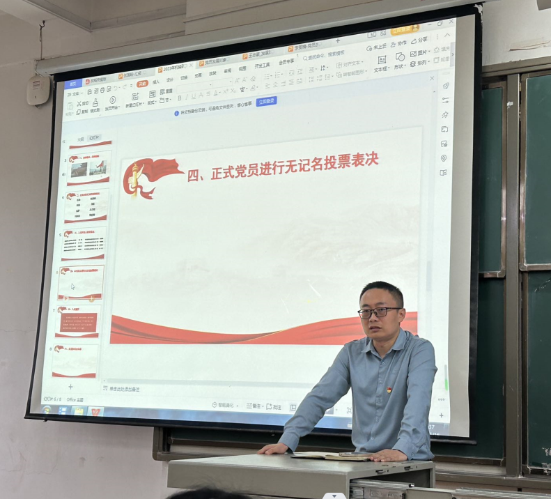 此次预备党员接收会议的成功召开,为党支部注入了新的血液,进一步加强了支部党组织建设。支部书记谢超老师强调在党组织的带领下,全体党员同志要坚持以习近平新时代中国特色社会主义思想为指导,坚定政治立场,要做思想的引领者、创新研究的示范者和为民服务的践行者,踔厉奋发、笃行不怠,,赓续前行、奋楫争先。