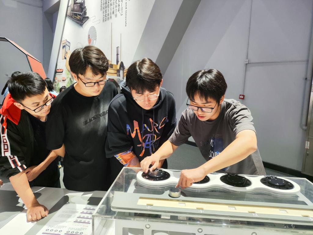 “现在我们所在的就是科技瑰宝展厅,我身后的就是浑天仪和地动仪模型,它是用来测量天体球面坐标、监测地震动态,简约的机械构造,不简单的原理,是古代气象监测的宝贵工具……”在教工党员戴伟博士的带领下,师生们一同参观了科技瑰宝展厅和数理世界展厅。展厅内,一件件上天入海的大国重器让师生们深受震撼。在这里,课本上那些复杂又晦涩难懂的声、光、电、热原理变成了能直接操作的实验,沉浸式互动让科学变得简单易懂!第四支部吴晨曦受现场氛围感染,主动申请为同学们讲解近代西洋机械式计算器原理,讲课堂所学搬到科技馆,研讨氛围热烈。湖北省科技馆巧妙的实验、精致的模型给师生们带来一场视、听、感盛宴,“好玩又走心”的体验让师生党员赞叹不已。