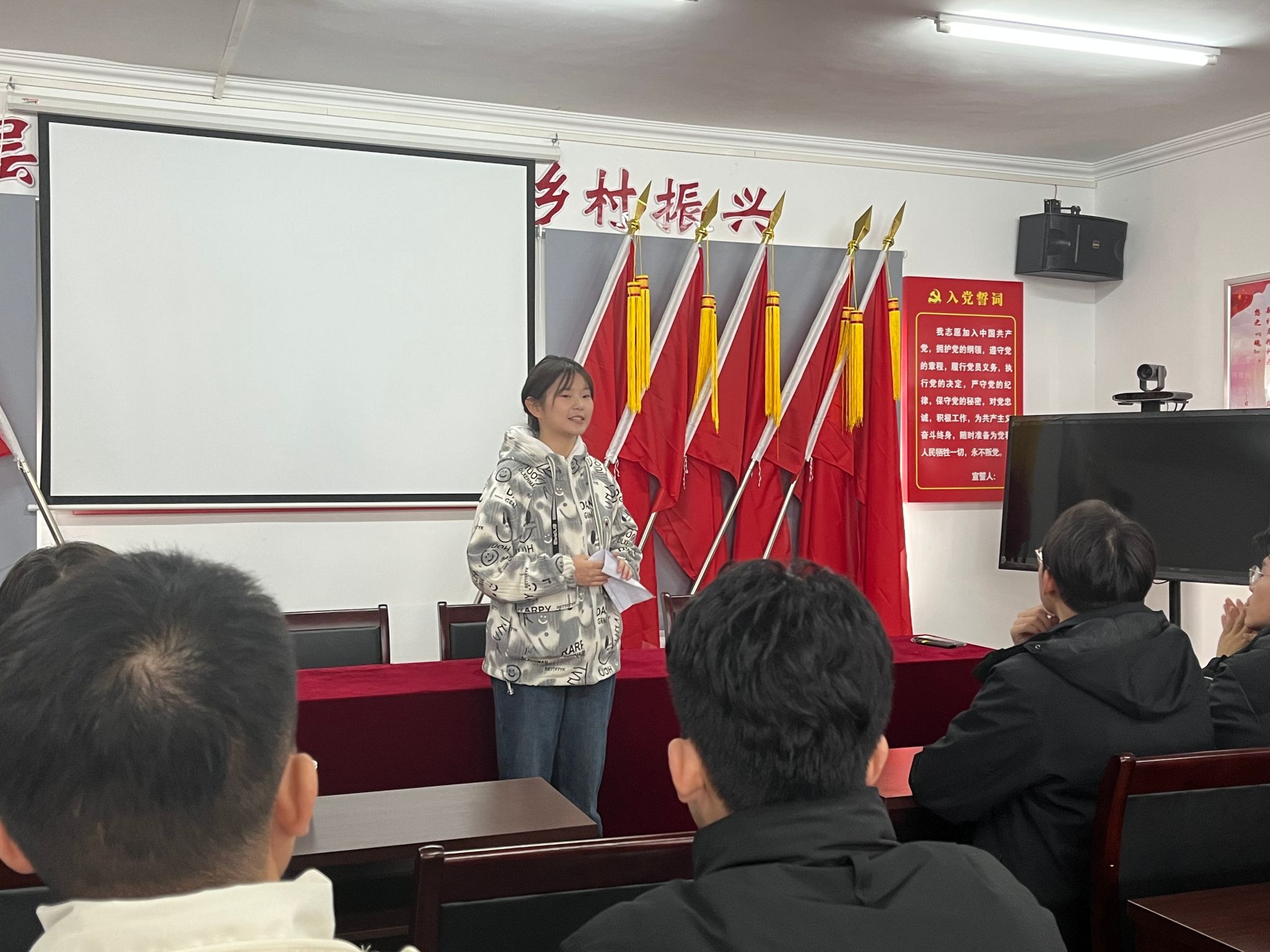 随后,陈能志威同志上台为大家分享了贺龙缴枪的故事,并分享自己参观瞿家湾的感受,表示老革命基地不仅仅只是一个景点,而是一个散发着红色气息的课堂,我们每个人都能从这里学习到知识,这里的过往历史催人奋进,让我们时刻铭记历史的教诲,先辈们用自己的所作所为亲自给我们带来了一堂生动形象的党课,我们只有团结一致,不忘初心,才能不断开拓进取,实现理想抱负。