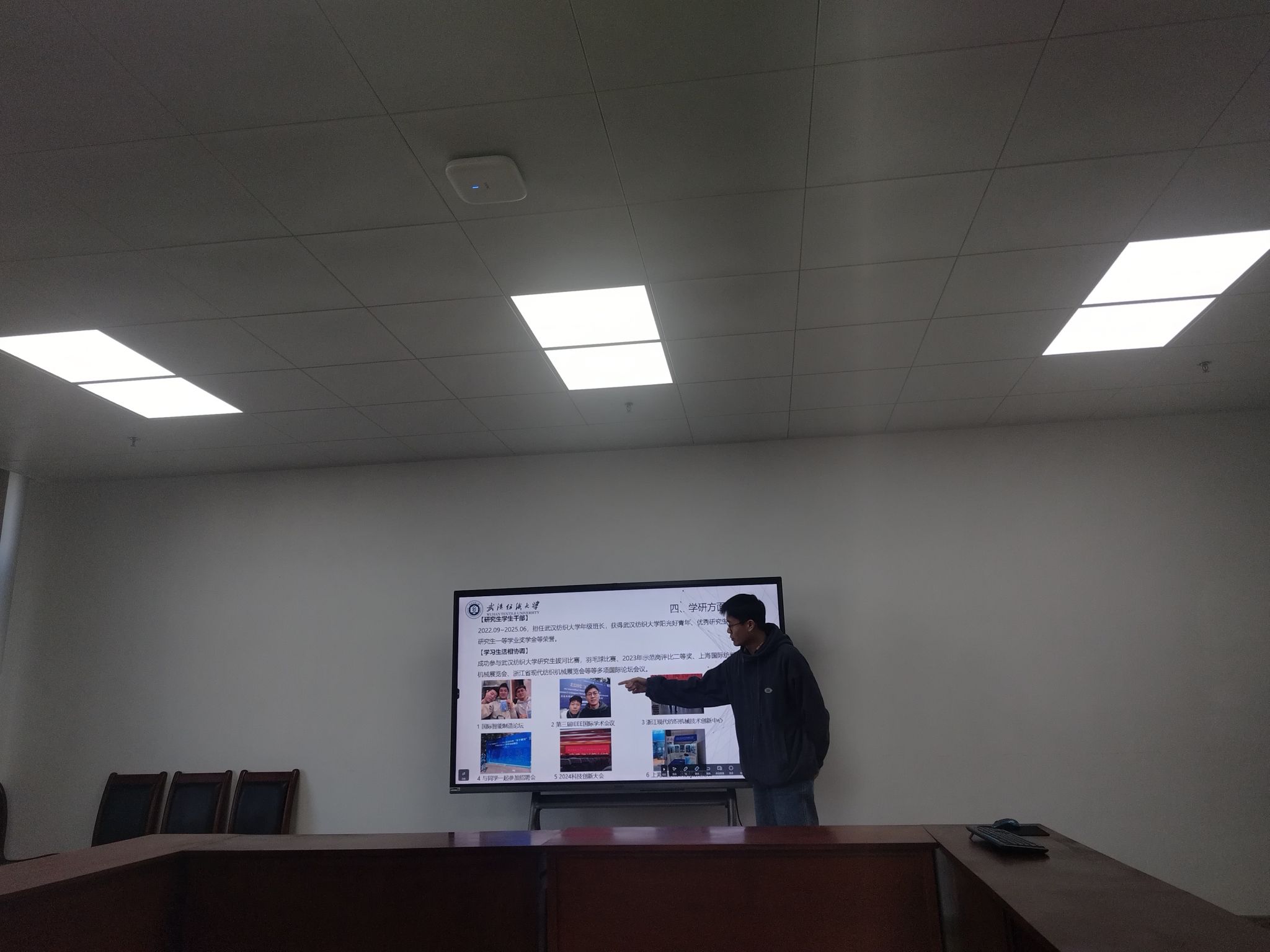 为促进研究生全面发展,提升公司产品质量,做好导学思政工作,充分发挥研究生工作室(实验室)的示范引领作用,积极创建安全文明、科学进步的研究生工作室(实验室),以奋斗之笔和青春之行投身到美好纺大和中国梦的建设中,公司于11月21日开展了研究生工作室(实验室)示范岗评选活动,德育导师熊小双老师、德育导师徐楚桥老师、教秘欧阳智勇老师和研究生辅导员谢超老师当任此次活动的评委。