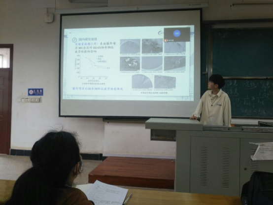 本次研究生论坛报告人的课题分别是《激光冲击对GCr15轴承钢疲劳性能的影响》、《印花镍网聚合物涂层激光作用机理研究》、《复合材料板-壳结构疲劳失效损伤机理与非接触式检测方法》、《离心纺丝法制备锂离子电池隔膜》、《静电纺丝制备超疏水薄膜》和《碳系纳米调料与银粉共混的复合型导电硅橡胶制备及其性能研究》。